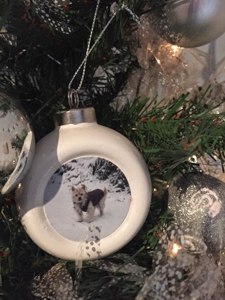 | Een kerstbal met een foto van Aïcha. <3 We moeten haar al meer dan 3 jaar missen. |