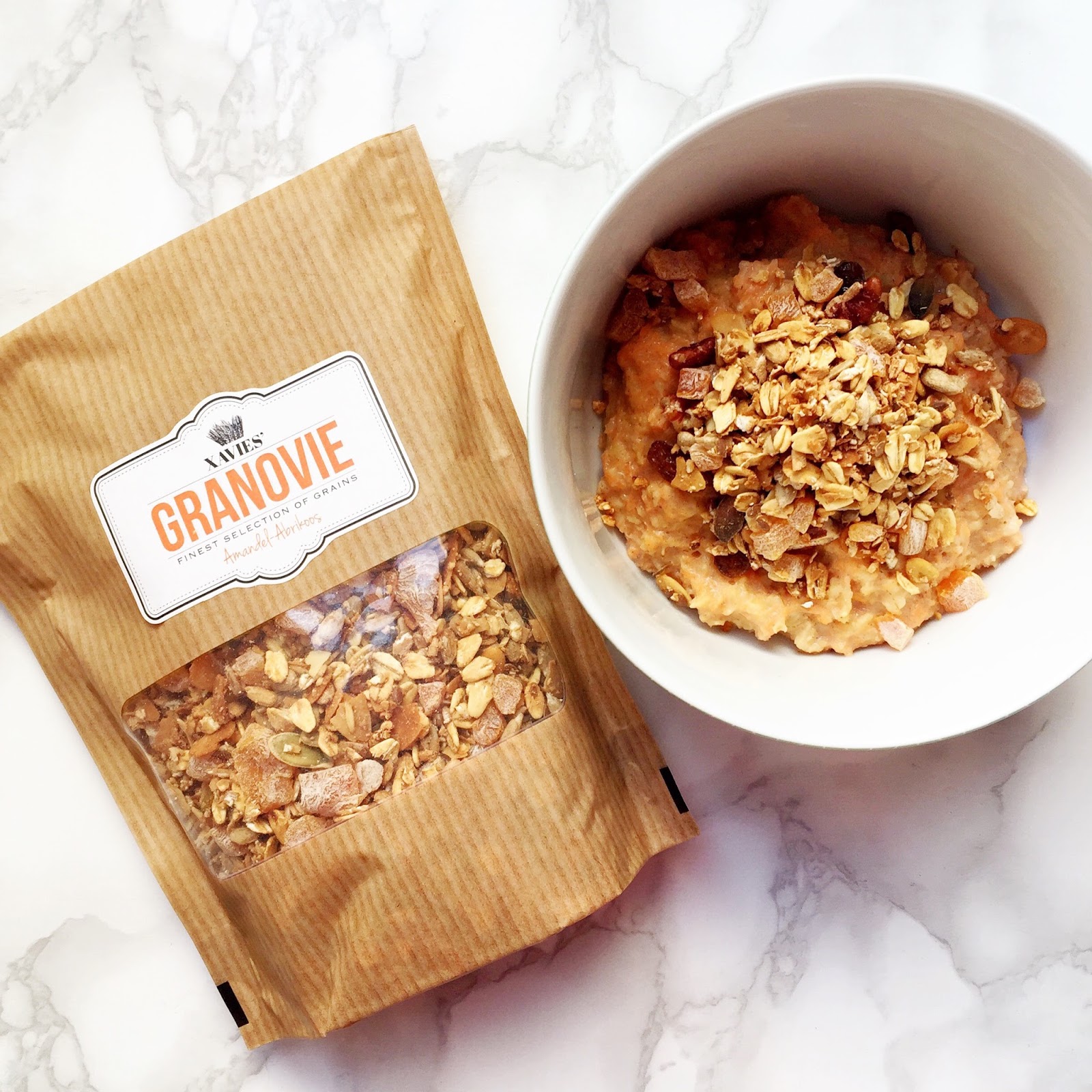Ik mag enkele granola’s uittesten van Xavies’ Granovie. Ik maakte een wortel havermoutontbijtje met pecans, rozijntjes, agave & amandel-abrikoos granovie. Lekkere combinatie!